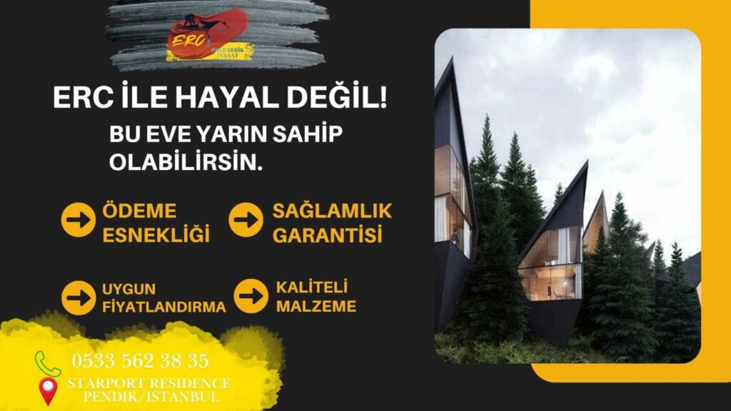 İstanbul Pendik’te bulunan Starport Residence ofisinden faaliyetlerini sürdüren Erc Prefabrik, hızlı teslim ve sabit maliyet avantajıyla da öne çıkıyor.