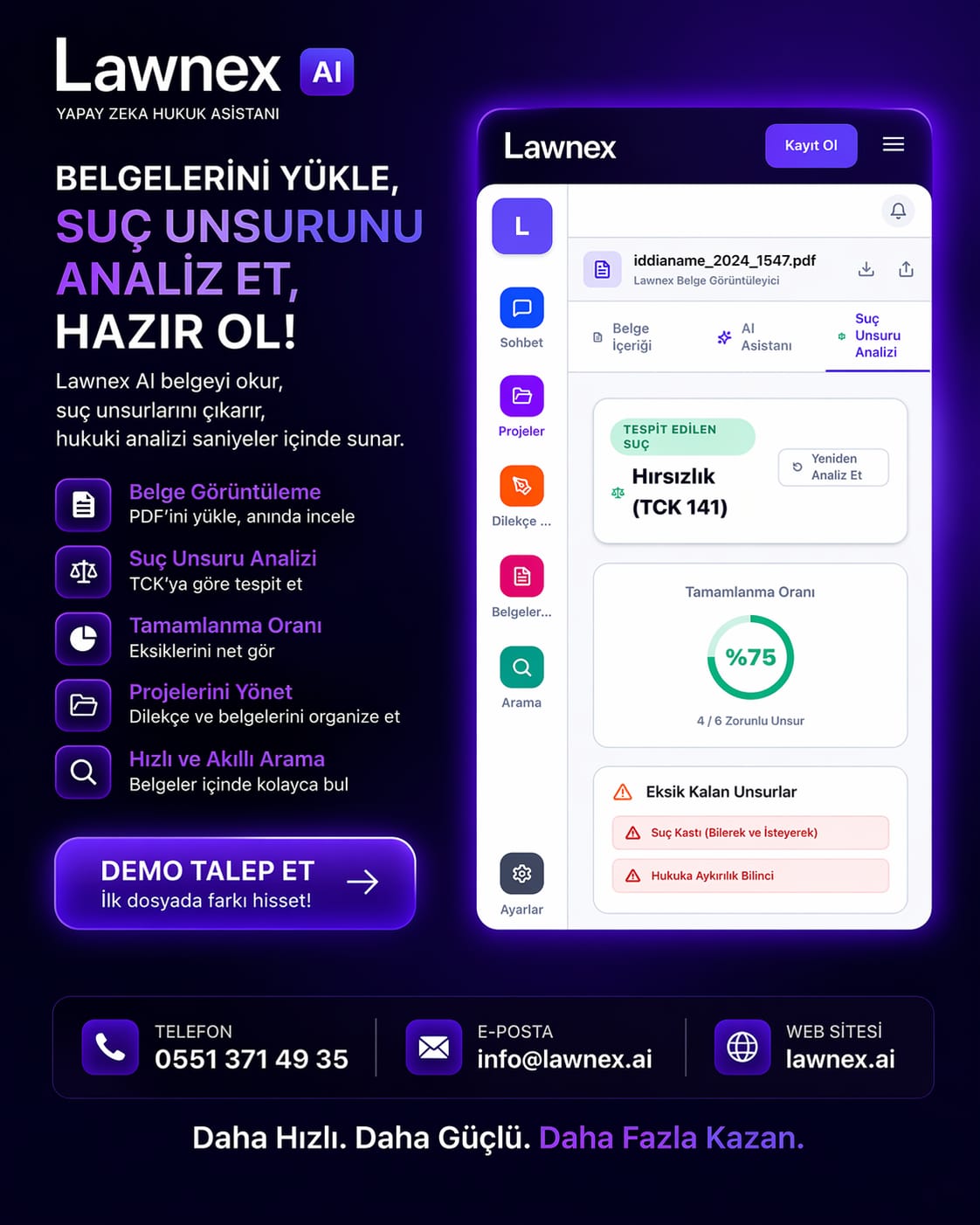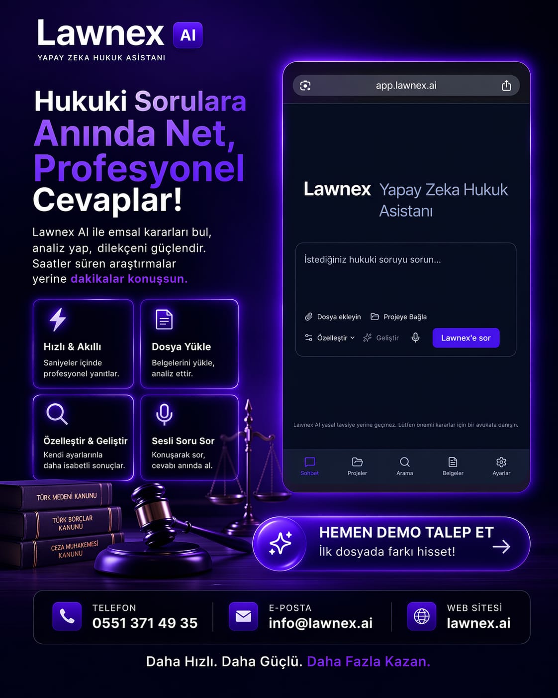 Bugün gelinen noktada hukuk pratiğinde öne çıkan yeni yaklaşım oldukça nettir: daha fazla veri, daha hızlı analiz ve daha güçlü hukuki strateji. LAWNEX yapay zeka da bu dönüşümün önemli araçlarından biri olarak hukuk dünyasında kendine yer edinmektedir.