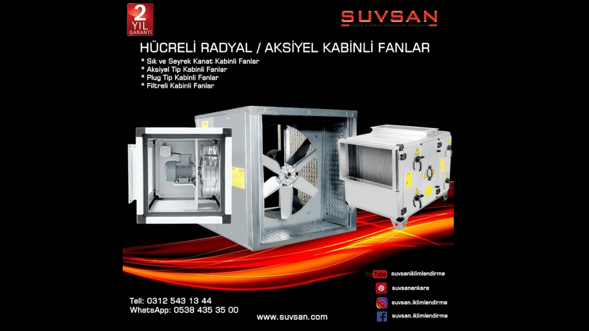 Yılların deneyimini modern teknolojiyle birleştiren Suvsan, iklimlendirme, havalandırma, fan sistemleri, ısıtma–soğutma ve otomasyon çözümleri alanlarında üretim yapıyor. Her proje, detaylı mühendislik hesaplarıyla hazırlanıyor; her ürün, kalite testlerinden geçerek kullanıcıya ulaşıyor.